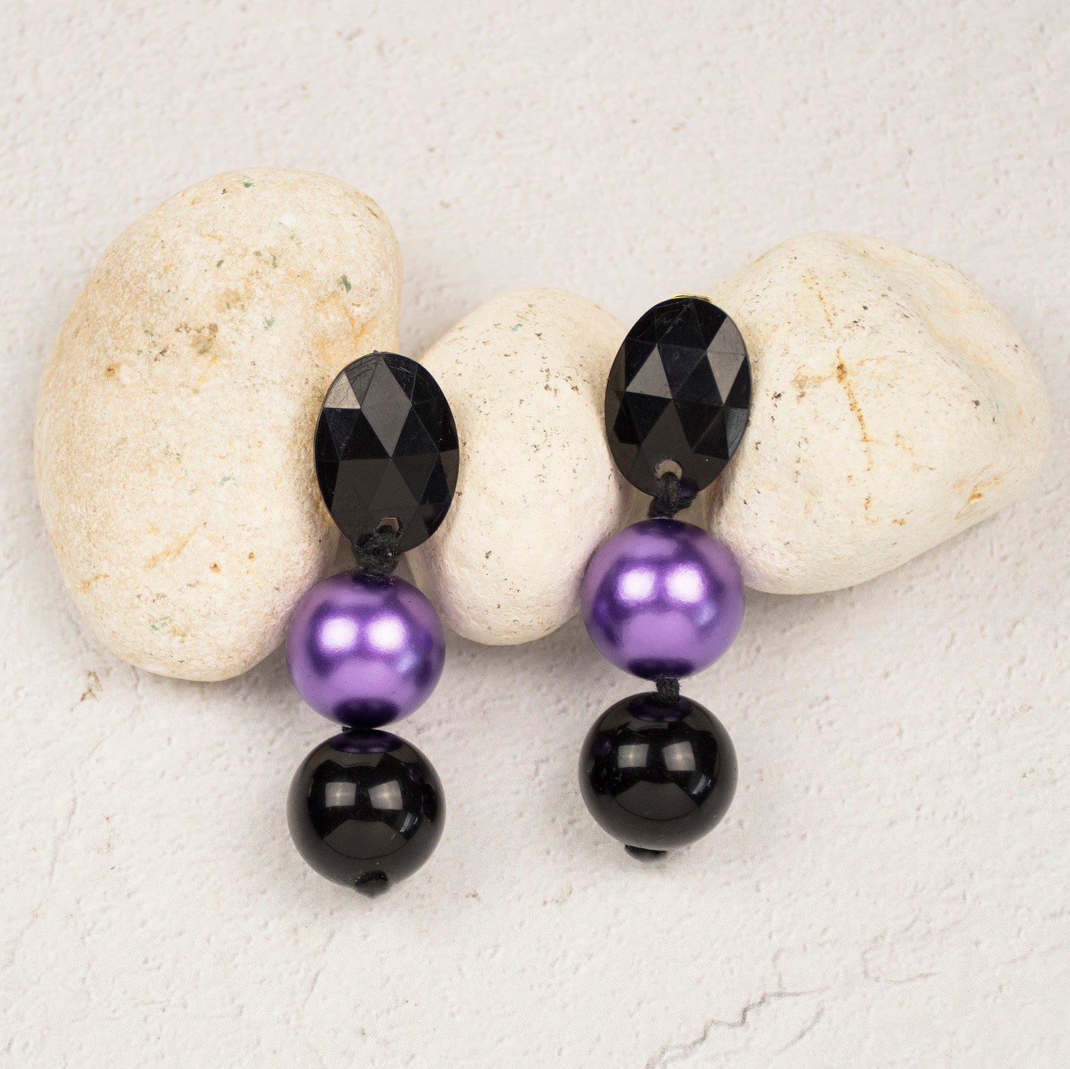 PURPLE POP TRIPLE-DROP EARRINGS.BLACK/PURPLE