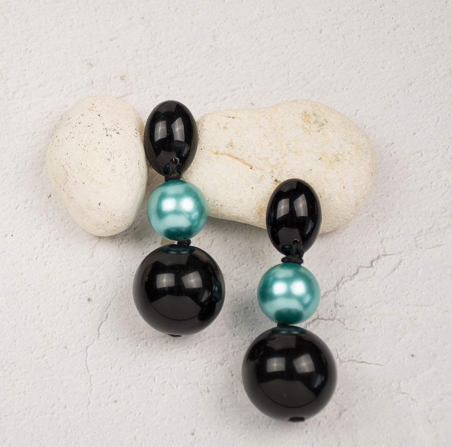 CHIC BLACK & TEAL TRIPLE-BALL BON BON EARRINGS ✨