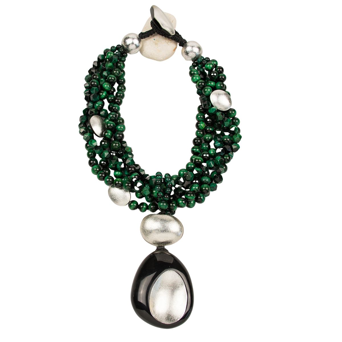 EMERALD INDULGENCE NECKLACE . EMERALD GREE/BLACK/SILVER