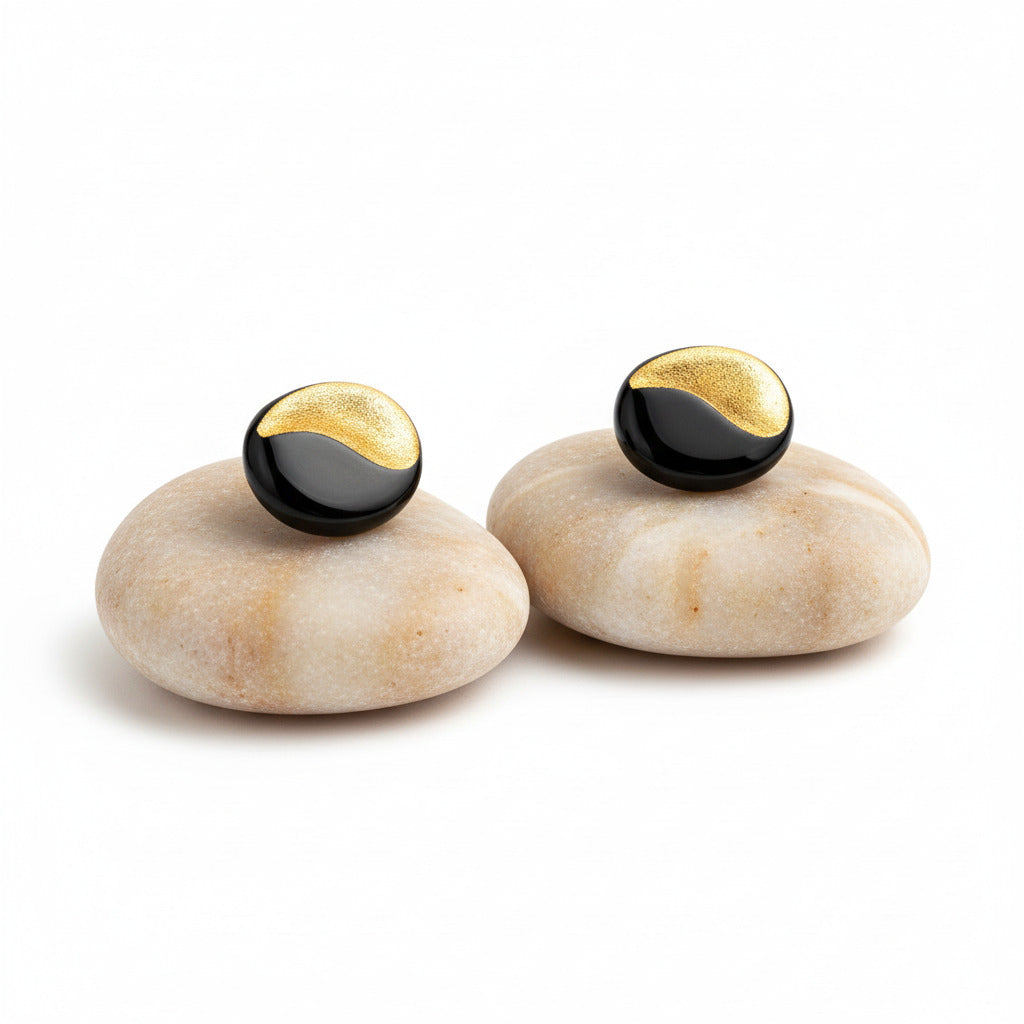 YIN AND YANG STUD EARRINGS BLACK/GOLD