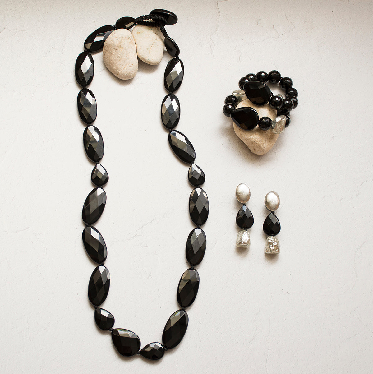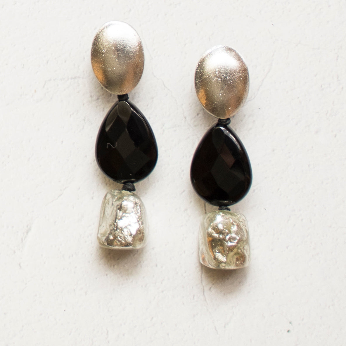 STATEMENT TRIPLE DROP EARRINGS.BLACK/SILVER
