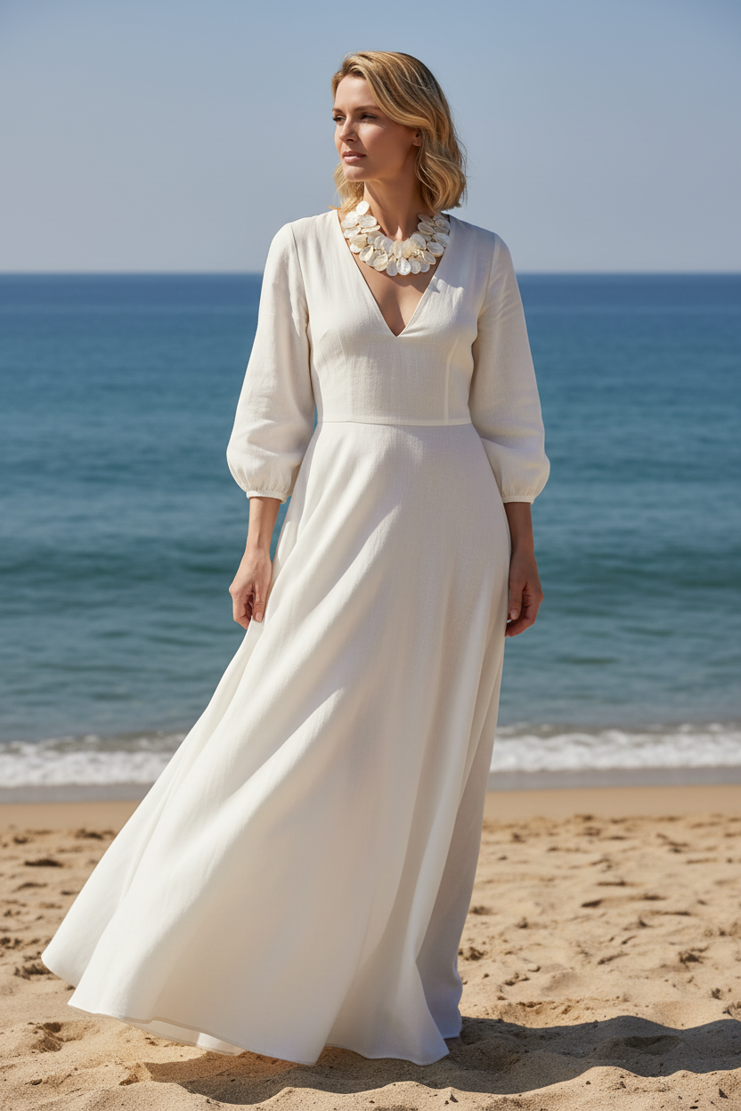 Measuring approximately 20 inches in length, this pearl white collar rests beautifully at the neckline, instantly elevating any look with seaside sophistication and timeless allure.