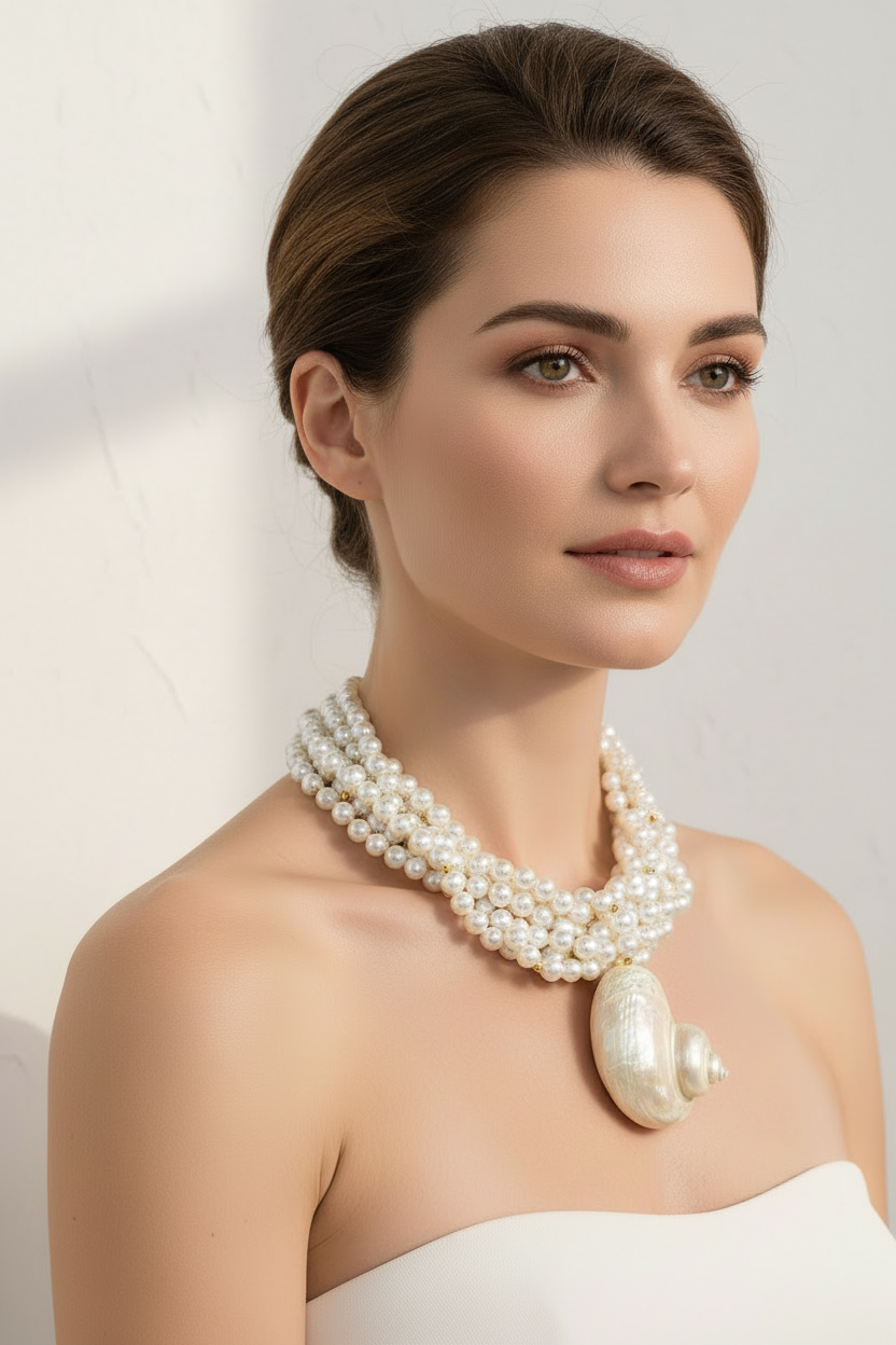 OCEAN TREASURE PEARLIZED TURBO SHELL STATEMENT NECKLACE. WHITE