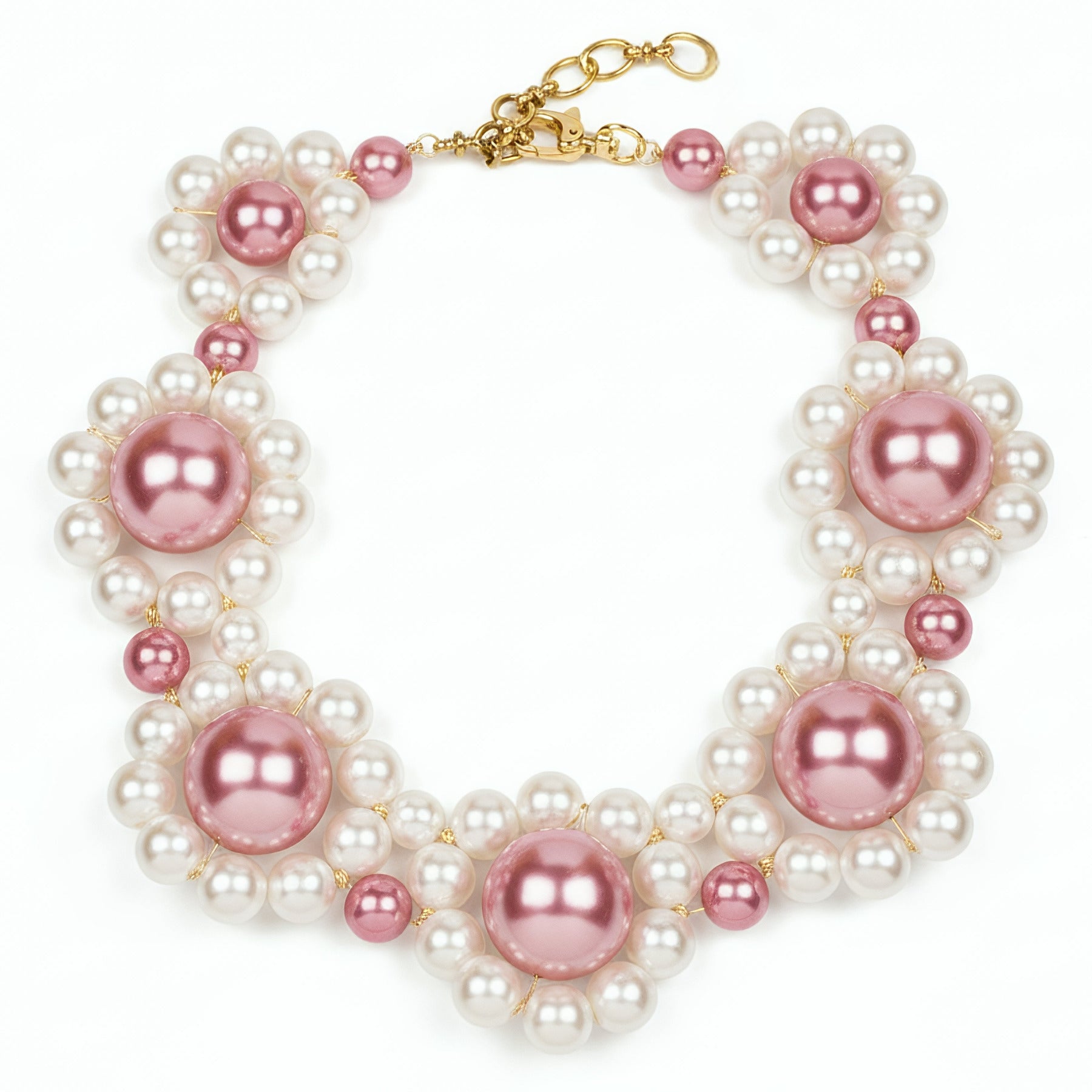 LACE DAISY PEARL BLOSSOM NECKLACE. PEARL/PINK