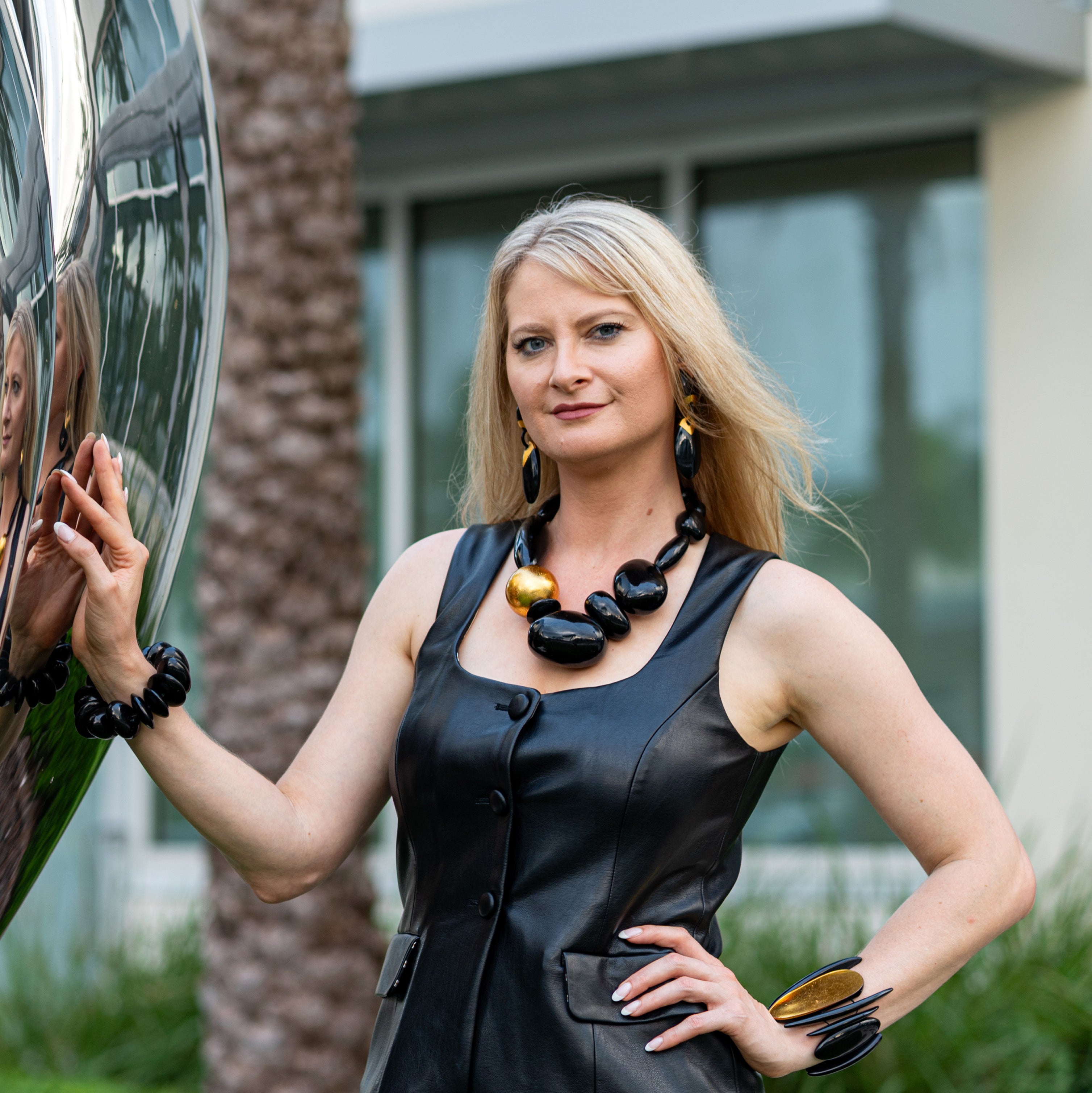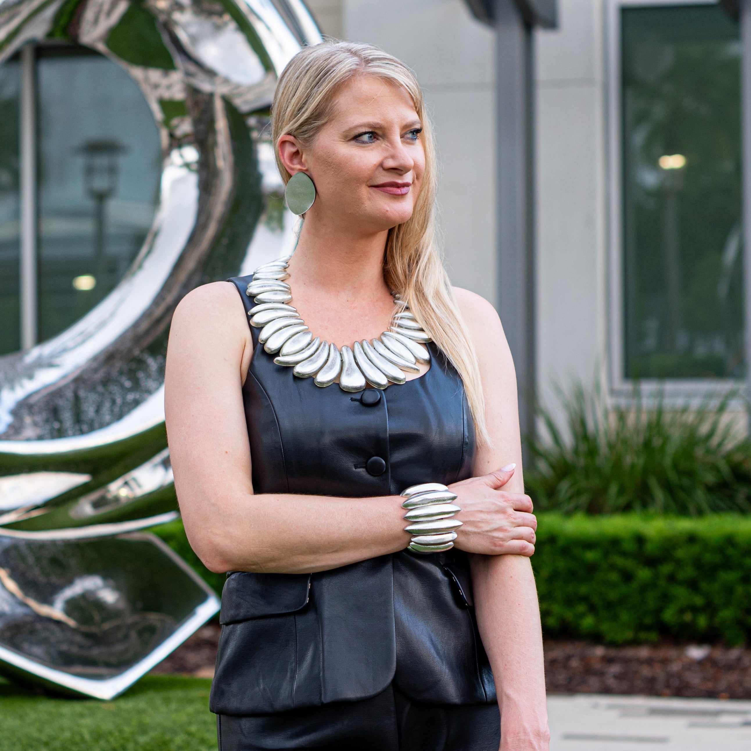 ABSTRACT ALLURE: SILVER FOIL LAMINATED NECKLACE. SILVER