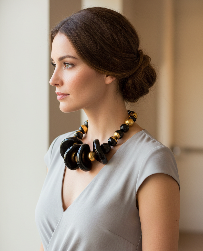 MURANO NECKLACE BLACK/GOLD FOIL BLACK/GOD FOIL