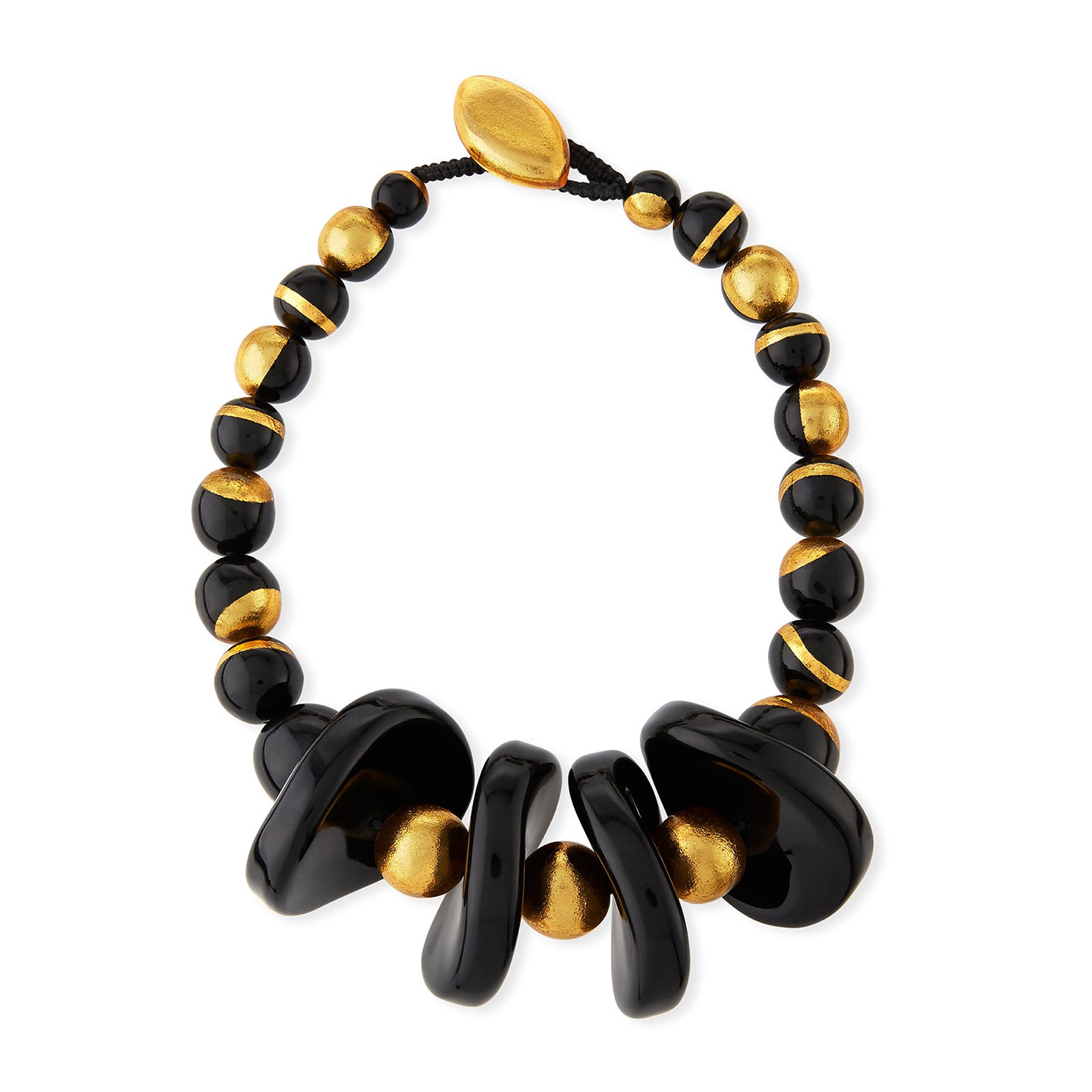 FREEFORM RESIN STATEMENT NECKLACE. BLACK/GOLD