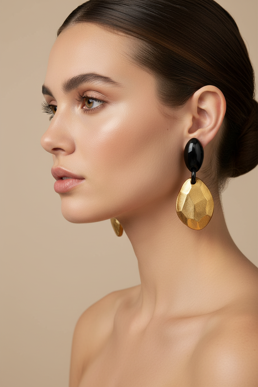 STATEMENT DROP EARRINGS.BLACK/GOLD