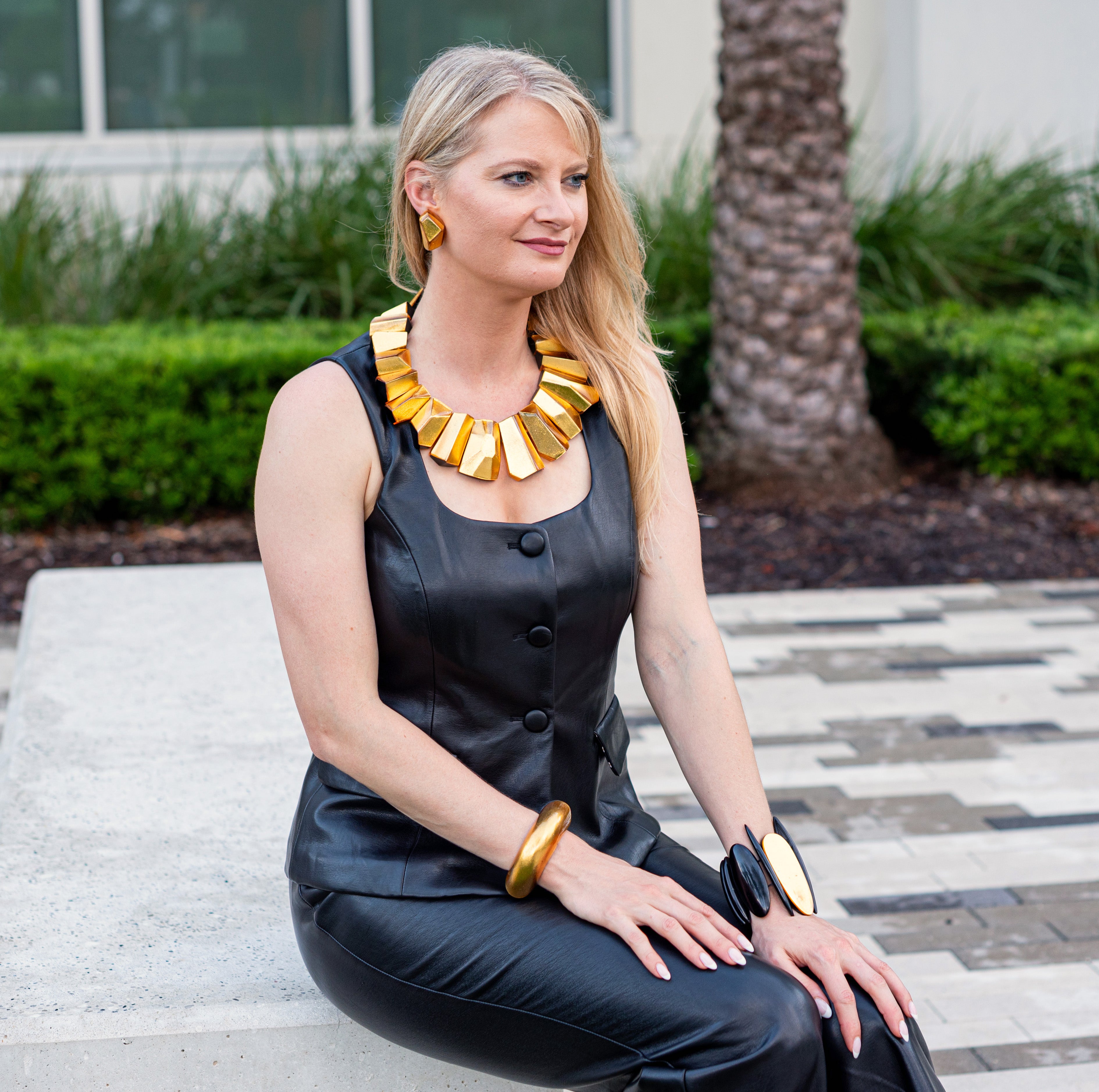STATEMENT PYRAMID METALLIC NECKLACE. GOLD