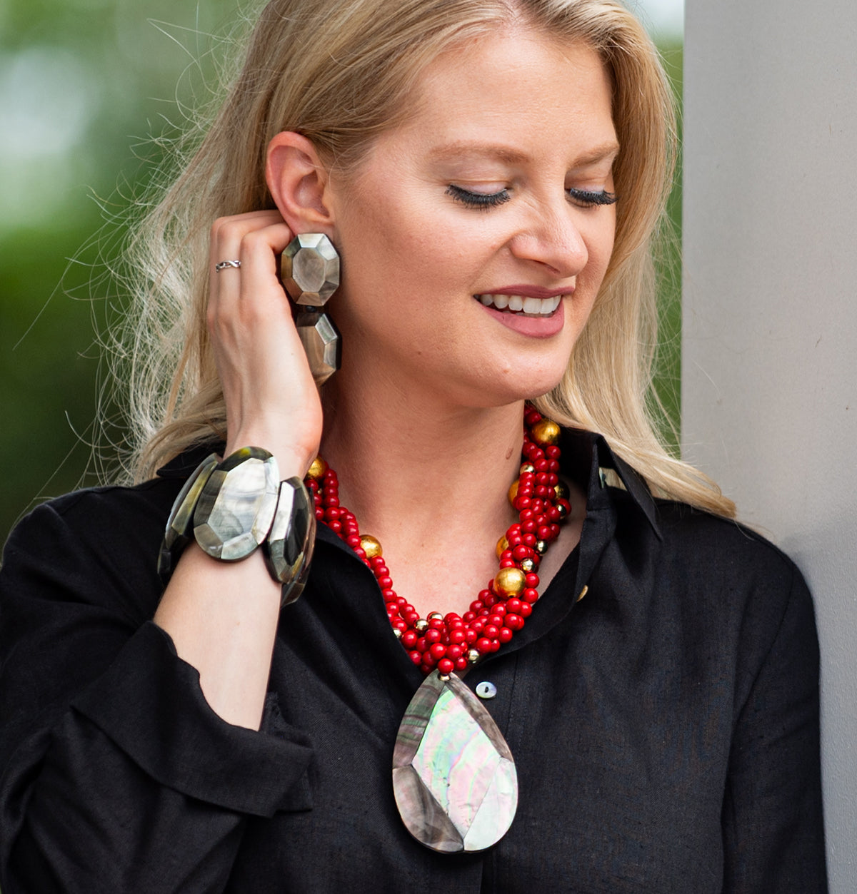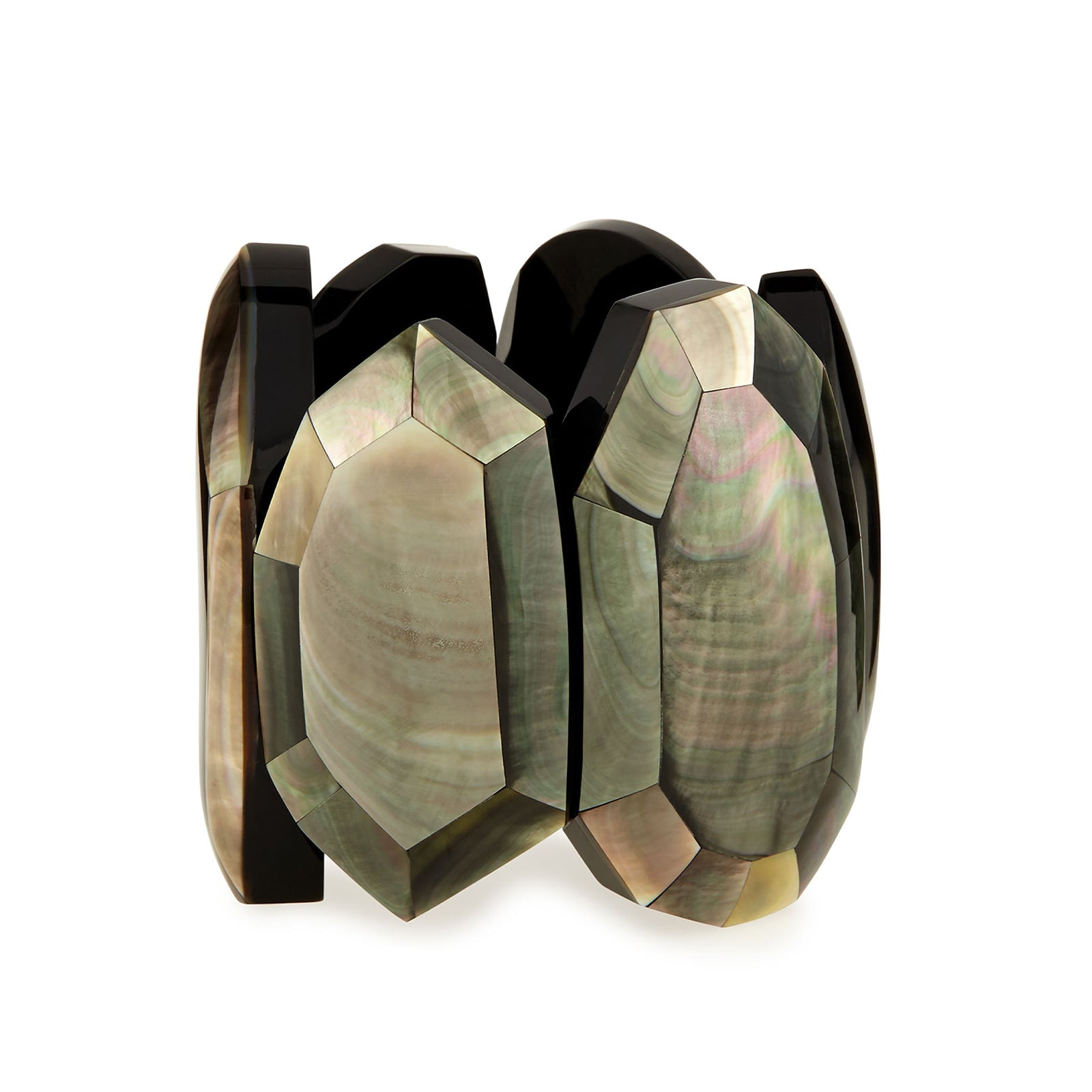 FACETED STATEMENT STRETCH CUFF. BLACK MOP