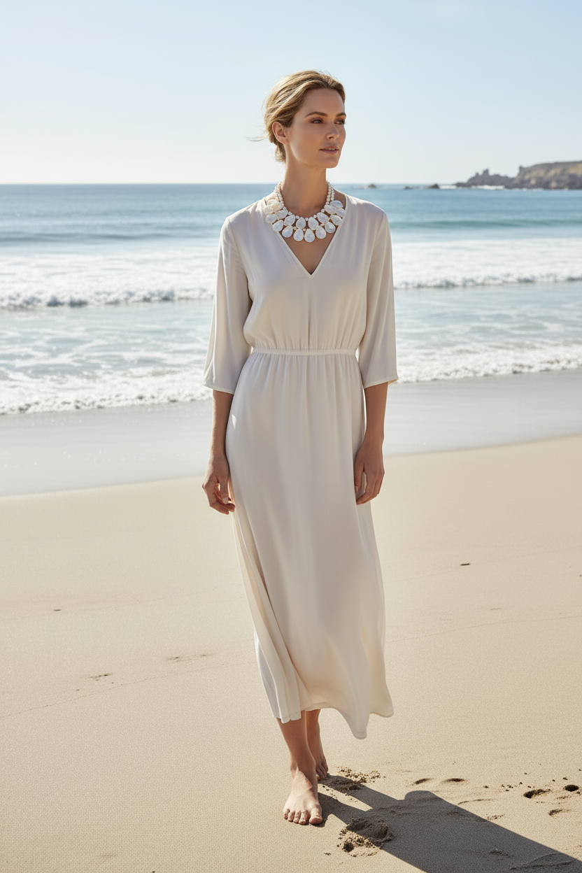 At approximately 19" inches in length, this necklace sits perfectly to frame the collarbone—ideal for sun-kissed days, breezy evenings, and every moment you want to glow a little brighter.