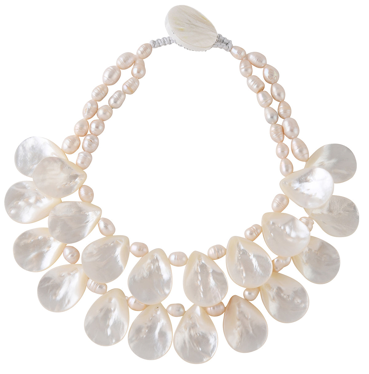 DOUBLE STRAND FRESH WATER PEARL AND MOTHER-OF-PEARL NECKLACE. PEARL WHITE
