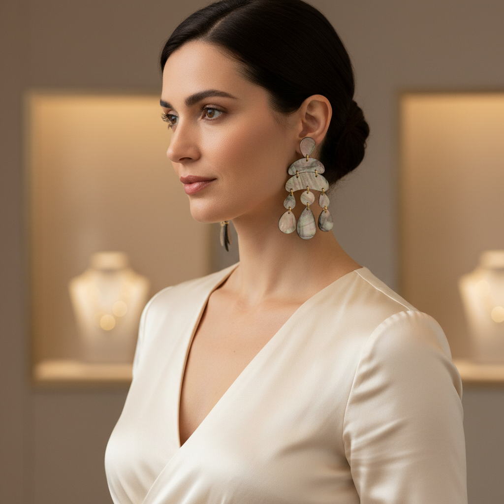 CHANDELIER MOP EARRINGS. WHITE MOP