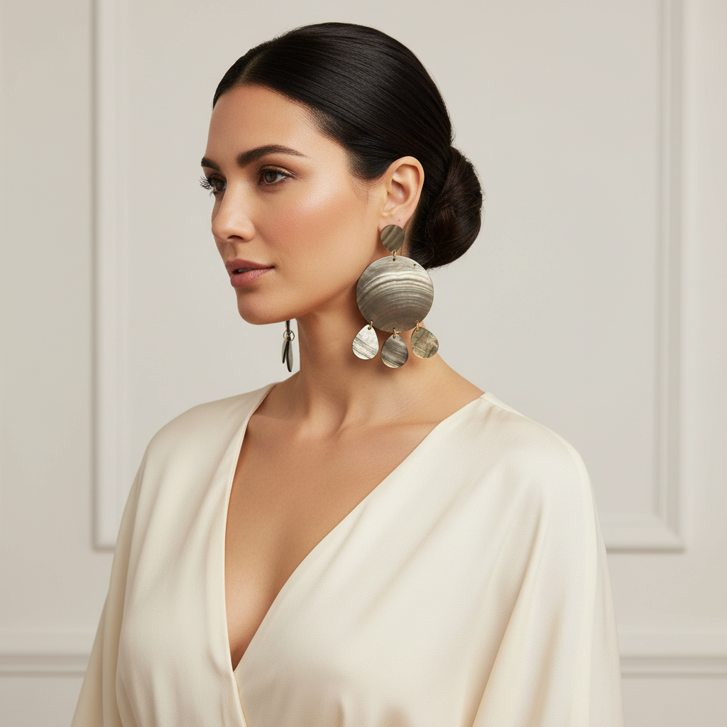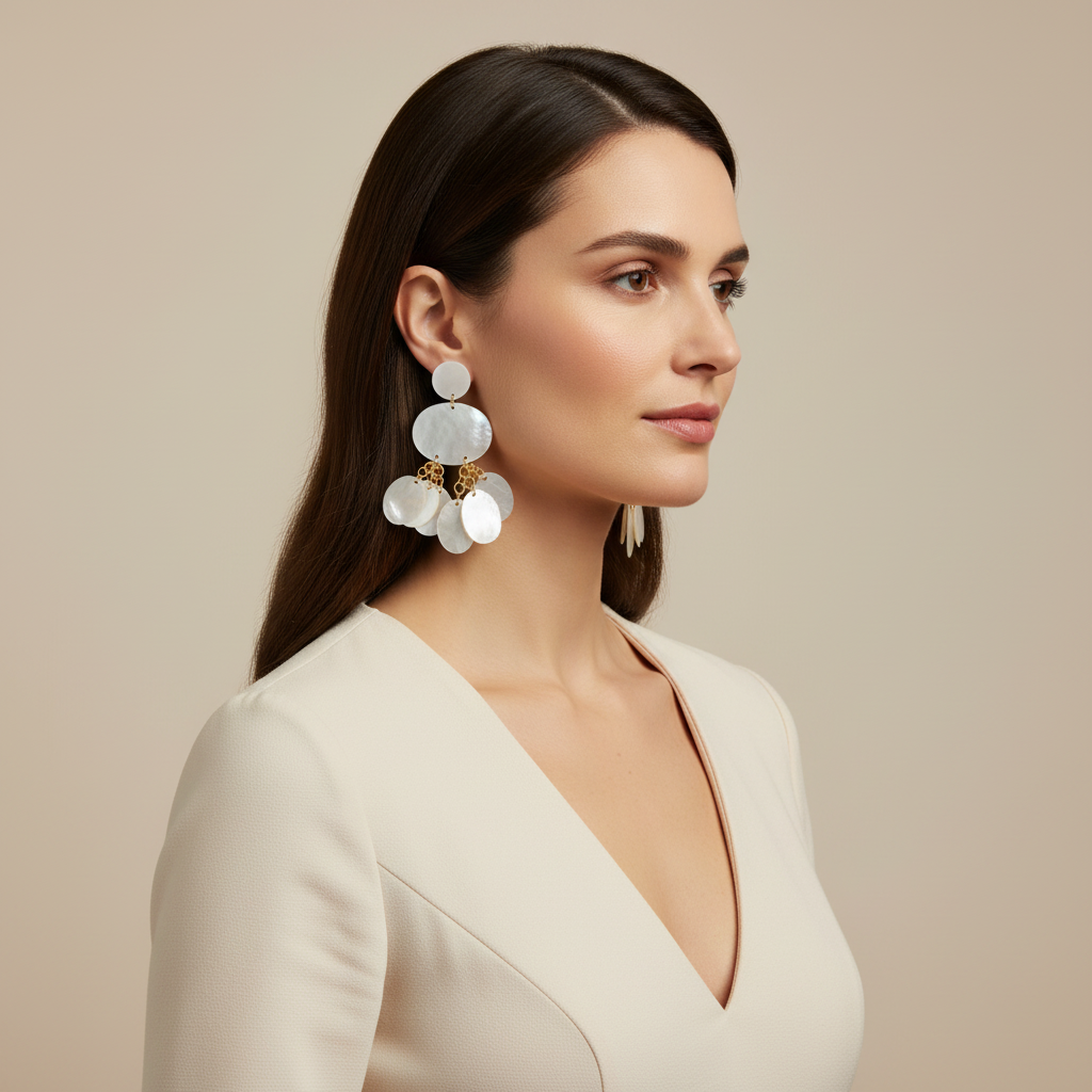 MOTHER OF PEARL STATEMENT EARRINGS. WHITE MOP