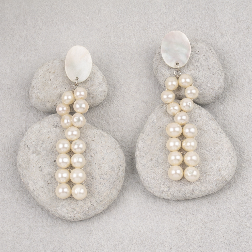 WATERFALL MOTHER-OF-PEARL EARRINGS. WHITE