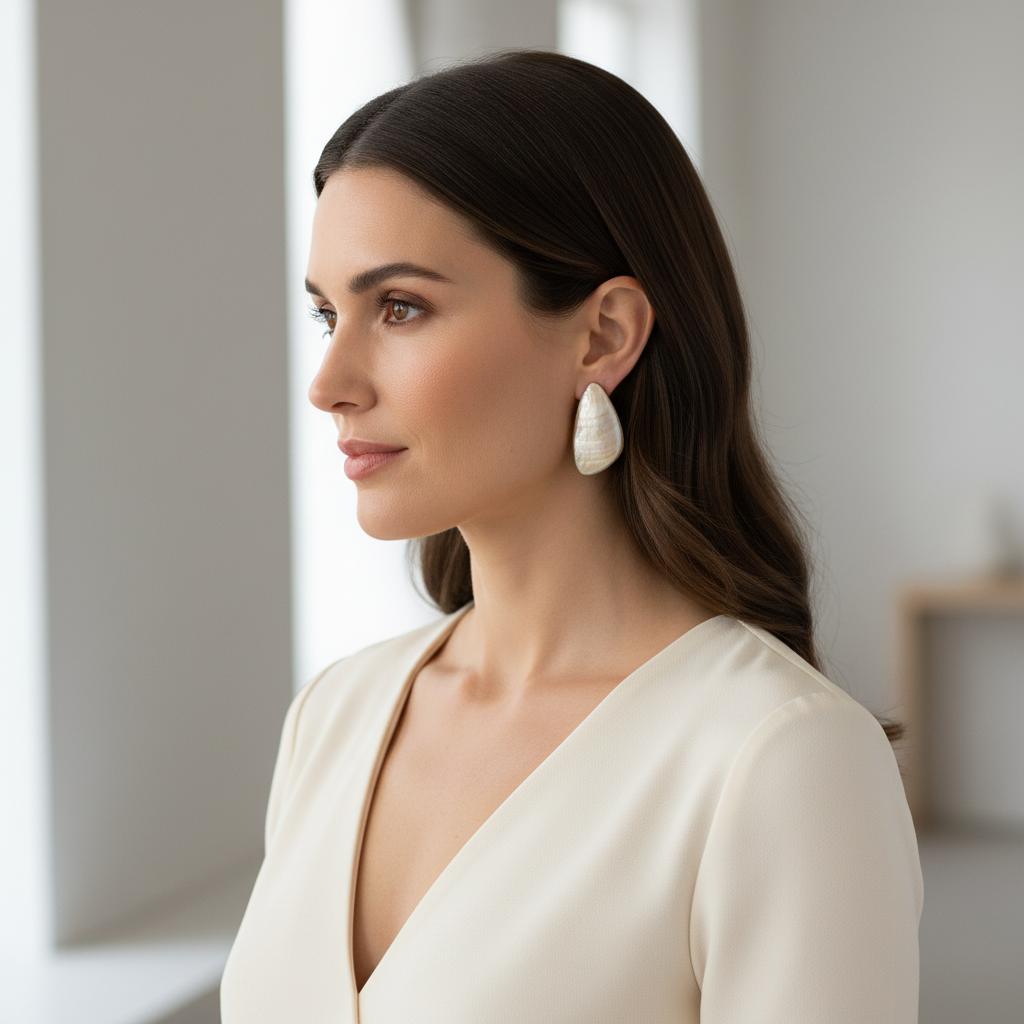 STATEMENT SHELL EARRINGS. PEARL WHITE