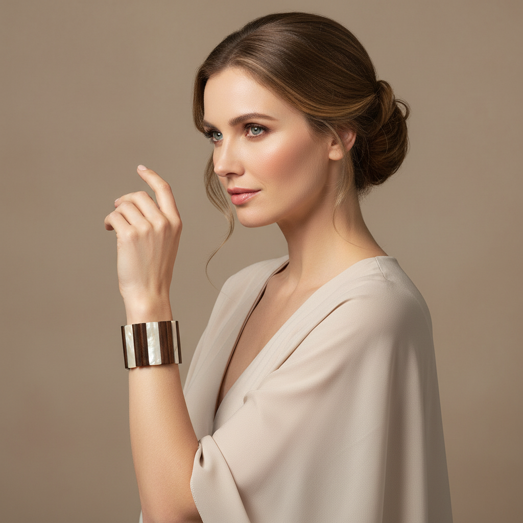 STRETCH TALL CUFF BRACELET. BROWN/MOP